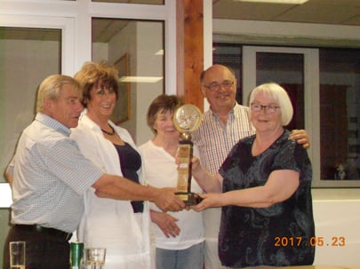 Auf dem Foto sieht man die Gruppenleiter , als sie den Wanderpokal übergeben.